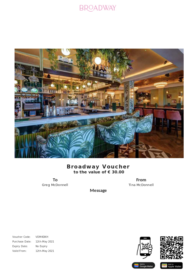 Broadway allows you to purchase instantly printable gift vouchers, special offers and tickets using the Voucher Connect platform.